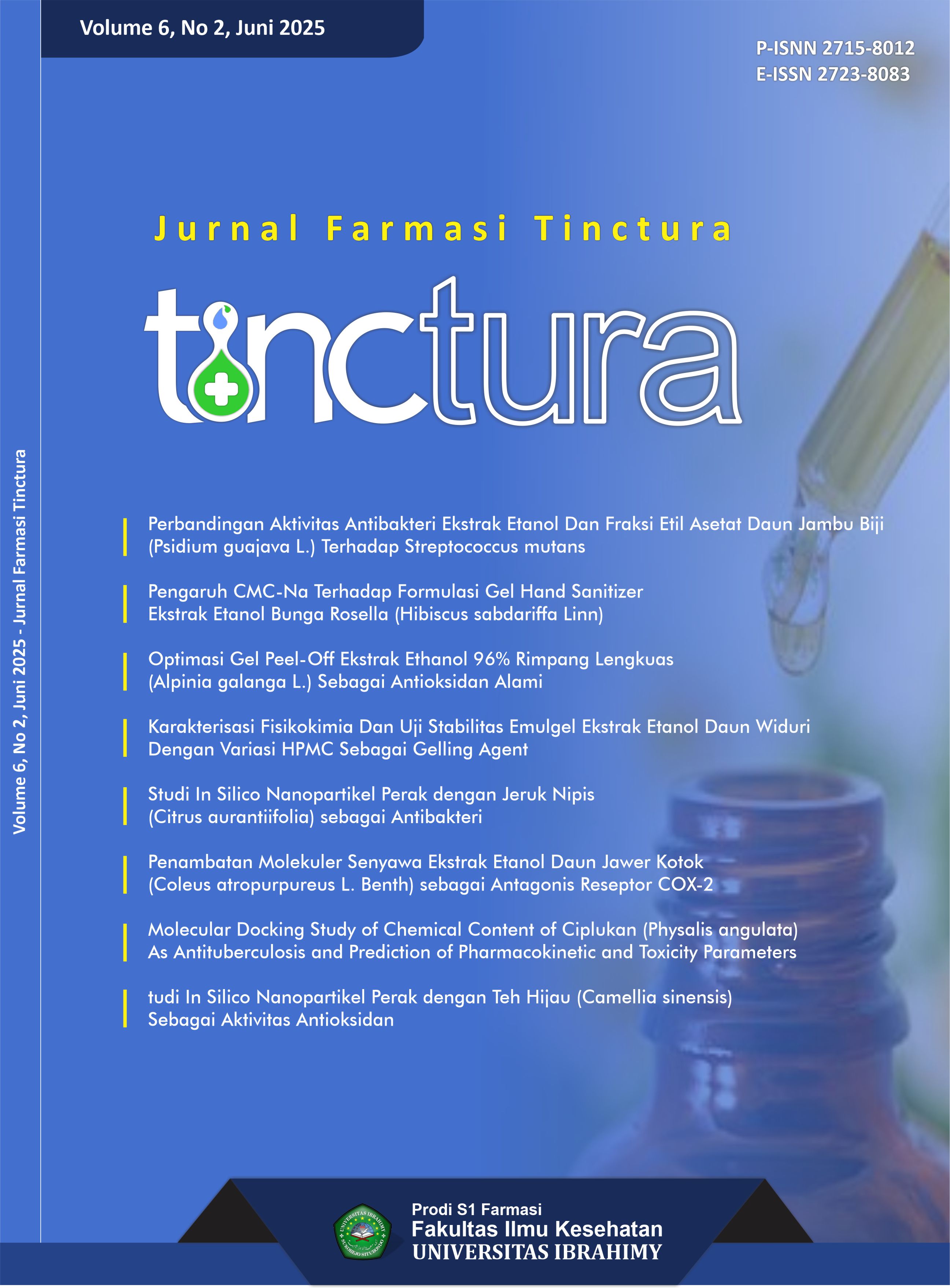 Vol. 5 No. 2 (2024)Jurnal Farmasi Tinctura adalah media publikasi ilmiah di bidang ilmu kefarmasian yang diterbitkan oleh Program Studi S1 Farmasi Fakultas Ilmu Kesehatan Universitas Ibrahimy sejak tahun 2019.